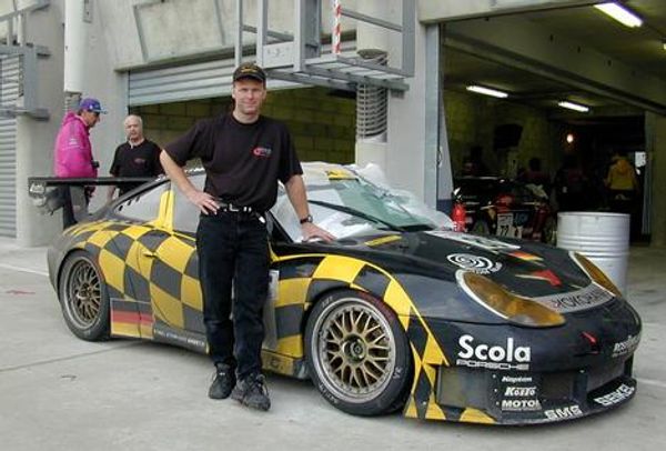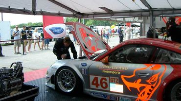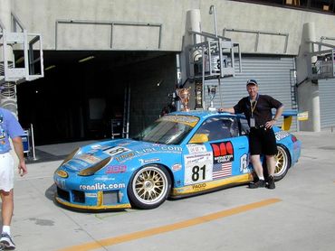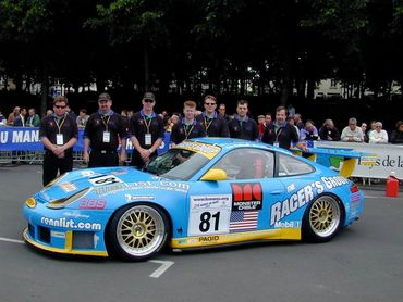 Bill Rader continues to support race teams on site at events while also servicing gearboxes at BRM at the Las Vegas Motor Speedway. On the right, Bill is at the 2001 LeMans with German team Seikel Motorsports, who went on to win the GT Class.