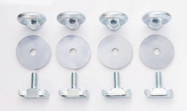 Mounting kit roof rack eyelets consisting of 4 threaded plates with stud bolts, 4 eyelets, 4 washers.