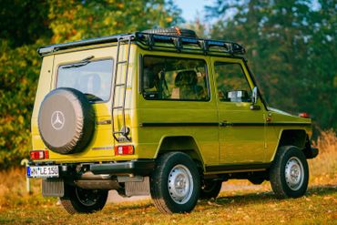 The rear ladder – suitable for roof racks (Part #1898 and 1012) especially for 460 series G-Classes with fuel tank filler neck in the rear panel – is made of quality thin-walled steel and is screwed onto the top of the roof rack. We supply a mounting plate for the lower mounting point which is glued onto the body panel. This avoids bores into the metal and therefore corrosion while the ladder itself remains removable. Through the cathodic dip coating and black powder coating, the rear ladder is perfectly protected from weather conditions.