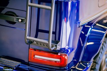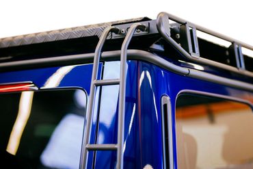 The LeTech rear ladder – compatible with roof rack Part #6699 – was developed for the latest generation of G-Class 463A as of 2018 models. The rear ladder is made from quality thin-walled, light steel and is screwed into the top of the roof rack. We supply a mounting plate for the lower mounting point which is glued onto the body panel. This avoids bores into the metal and therefore corrosion, and the ladder itself remains removable. Through the cathodic dip coating and powder coating, the rear ladder is perfectly protected from weather conditions.